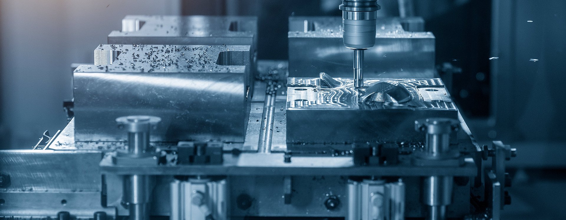Im Bereich des anspruchsvollen CNC-Fräsens können wir mit unseren großen DMG-Fräszentren komplexe 3D- und 5-Achs-Fräsbearbeitungen bis zu einer Größe von 2.700 x 2.700 x 1.600 mm durchführen. Gerne bearbeiten wir bei Bedarf auch im Bereich Fräsen Hartmetall.